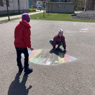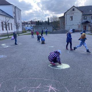 S prvními jarními paprsky jsme se těšili na dětské hřiště. Nyní chodíme každý slunečný den. V oblibě máme i návštěvy lesa a malování křídami na asfaltovém hřišti. Dne 22. 4. 2022 na Den země, jsme se se družinou vydali uklidit naše oblíbené dětské hřiště. Práce bylo fůra, ale společnými silami všech tří oddělení jsme to zvládli a zbyl i čas na nějaké to hraní.